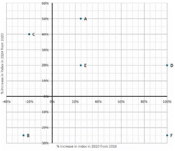 graph, we can find the SI for E in 2020 and 2016 as 75